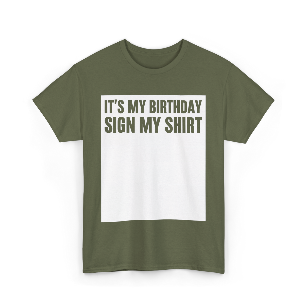 Celebrate your special day with this fun design. Perfect for birthday parties, it's a great way to let everyone know it's your birthday. The bold text encourages friends and family to sign the shirt, making it a memorable keepsake. Ideal for anyone who loves to celebrate and enjoy their birthdays with flair. Stand out at your party and make your day even more special with this amazing birthday-themed design, perfect for adults and kids alike.