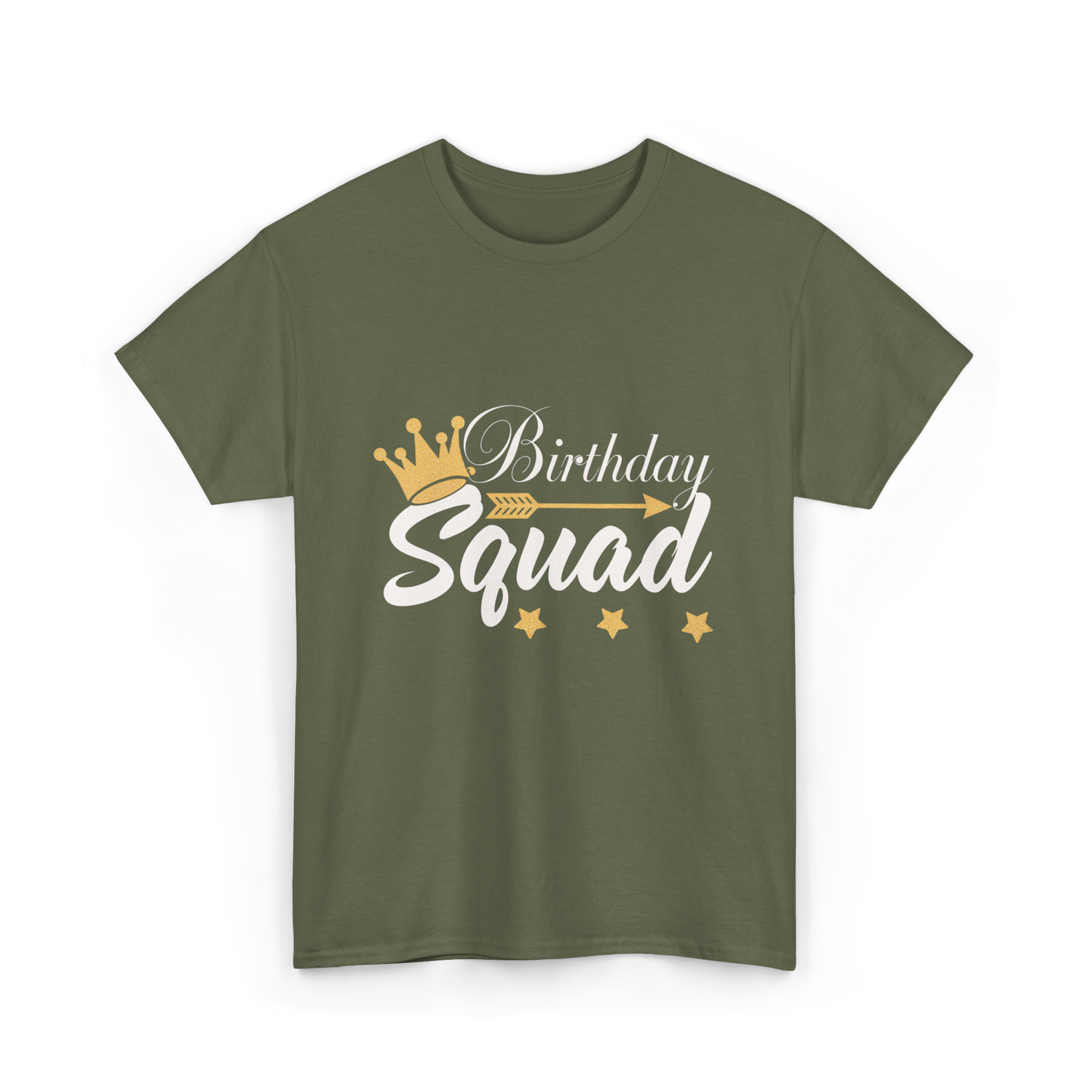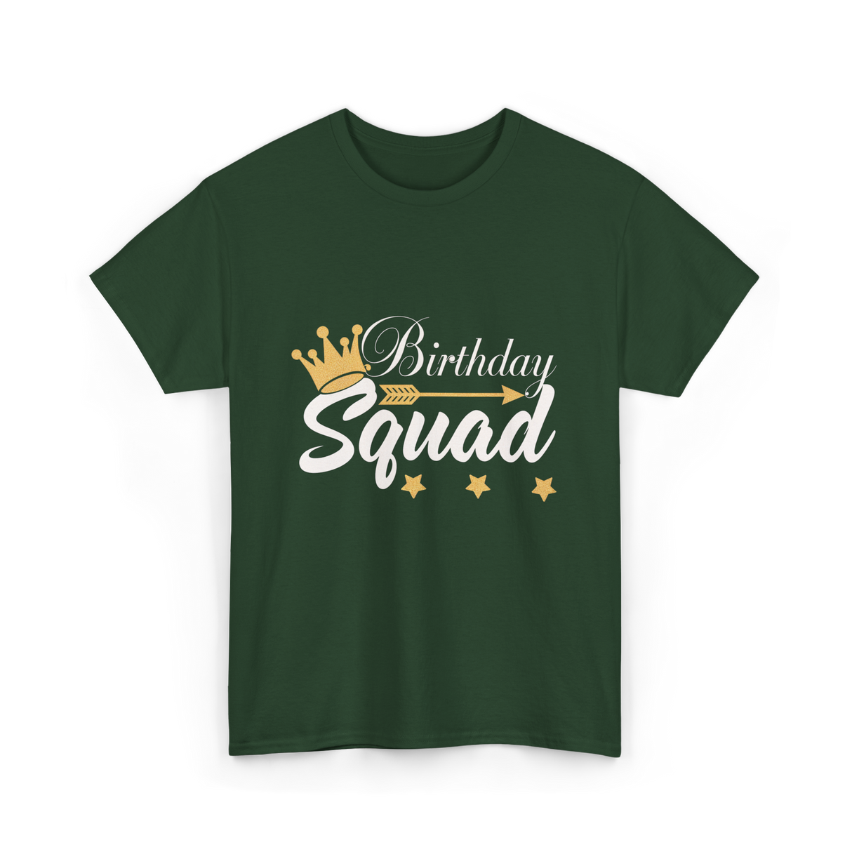 Celebrate in style with this vibrant design featuring the words 'Birthday Squad' along with a crown and stars, perfect for birthday parties. The design showcases a fun and festive atmosphere that friends sharing a birthday celebration will appreciate. Great for those who revel in special occasions and want to stand out in a crowd.