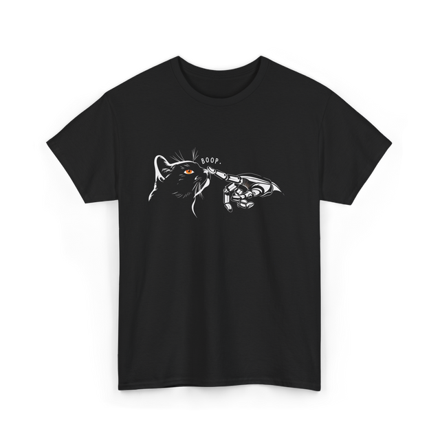 This unique design features a black cat with striking orange eyes and a robotic hand playfully touching its nose. With the playful text 'BOOP.', this graphic is perfect for cat lovers, tech enthusiasts, and anyone who enjoys a whimsical approach to art. It's an excellent conversation starter and adds a quirky touch to casual outings. Ideal for women, girls, and kids who adore cats and enjoy lighthearted themes.
