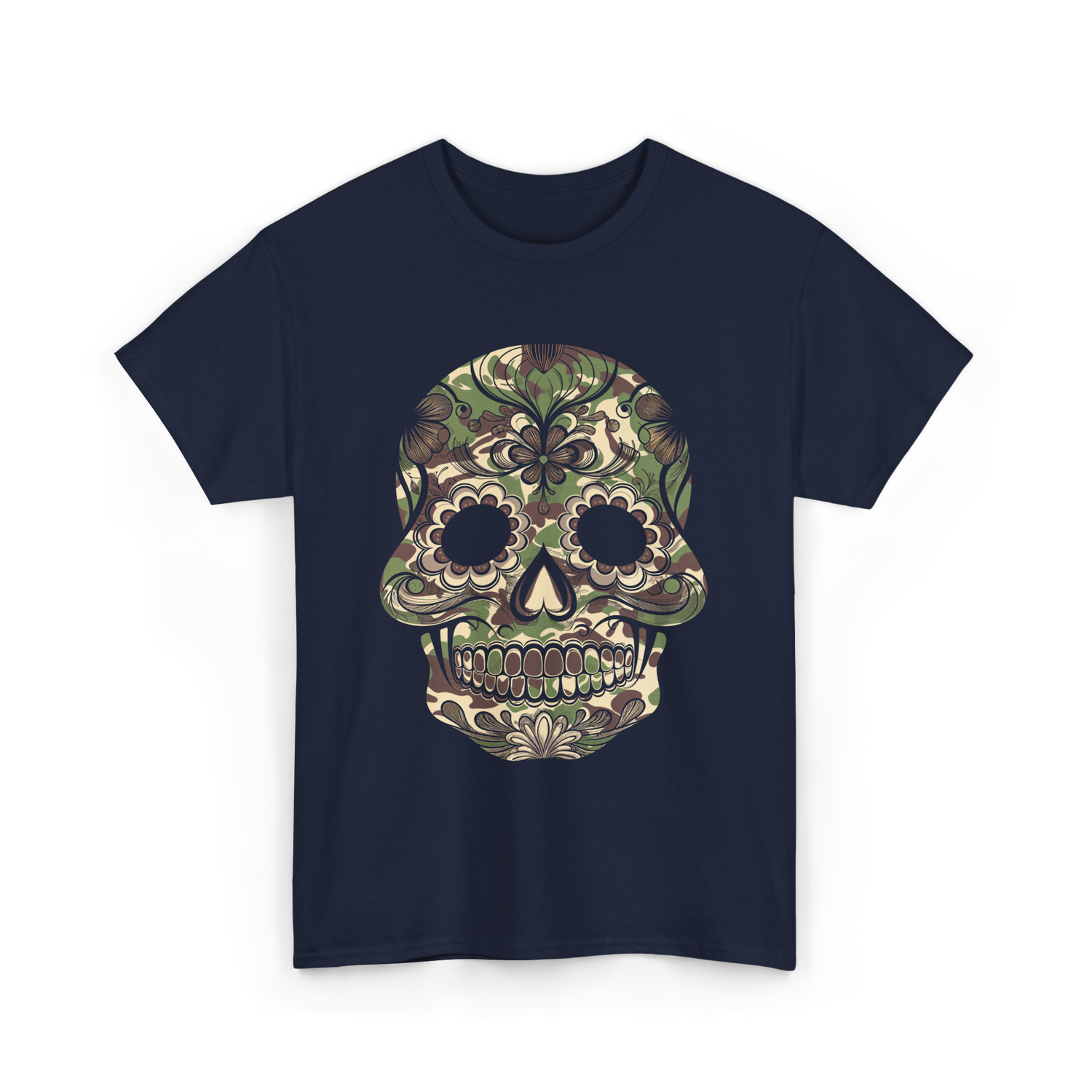 Explore the fusion of style and culture with this camo skull design, featuring intricate floral patterns and a unique color palette. Ideal for those celebrating Dia de Muertos or anyone who appreciates skull art. Perfect for art lovers and festival attendees looking to express their individuality, this design captures the essence of vibrant traditions while maintaining a modern twist. Embrace cultural heritage and stand out in a crowd with this striking design.