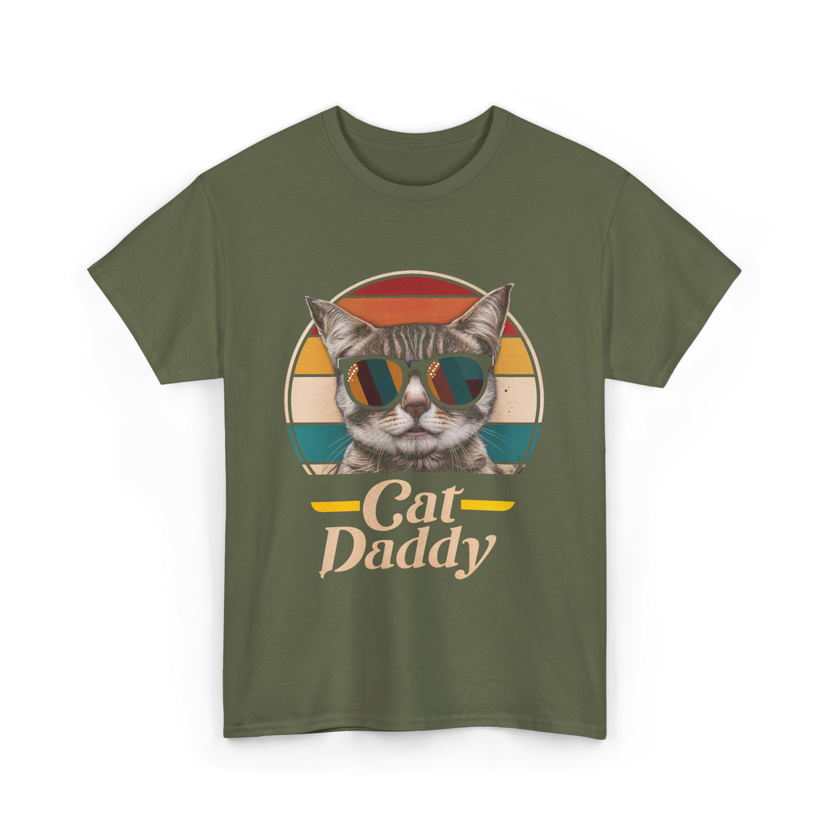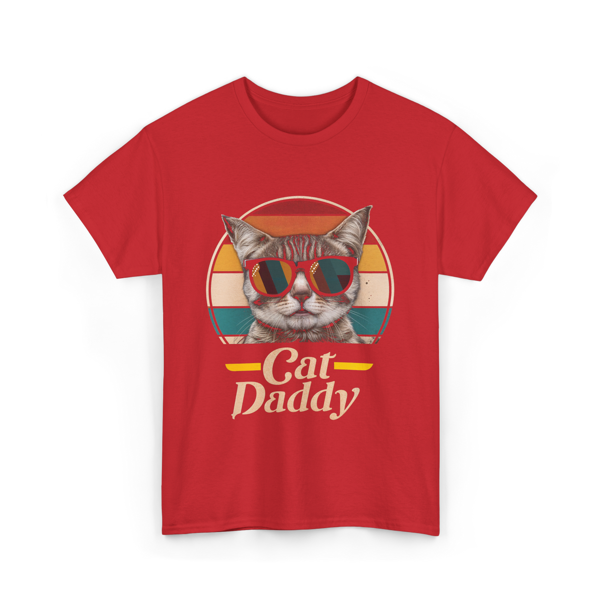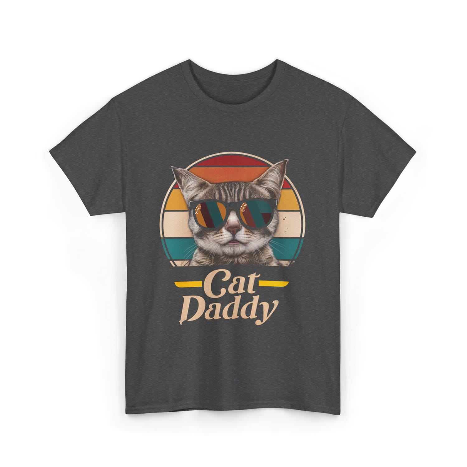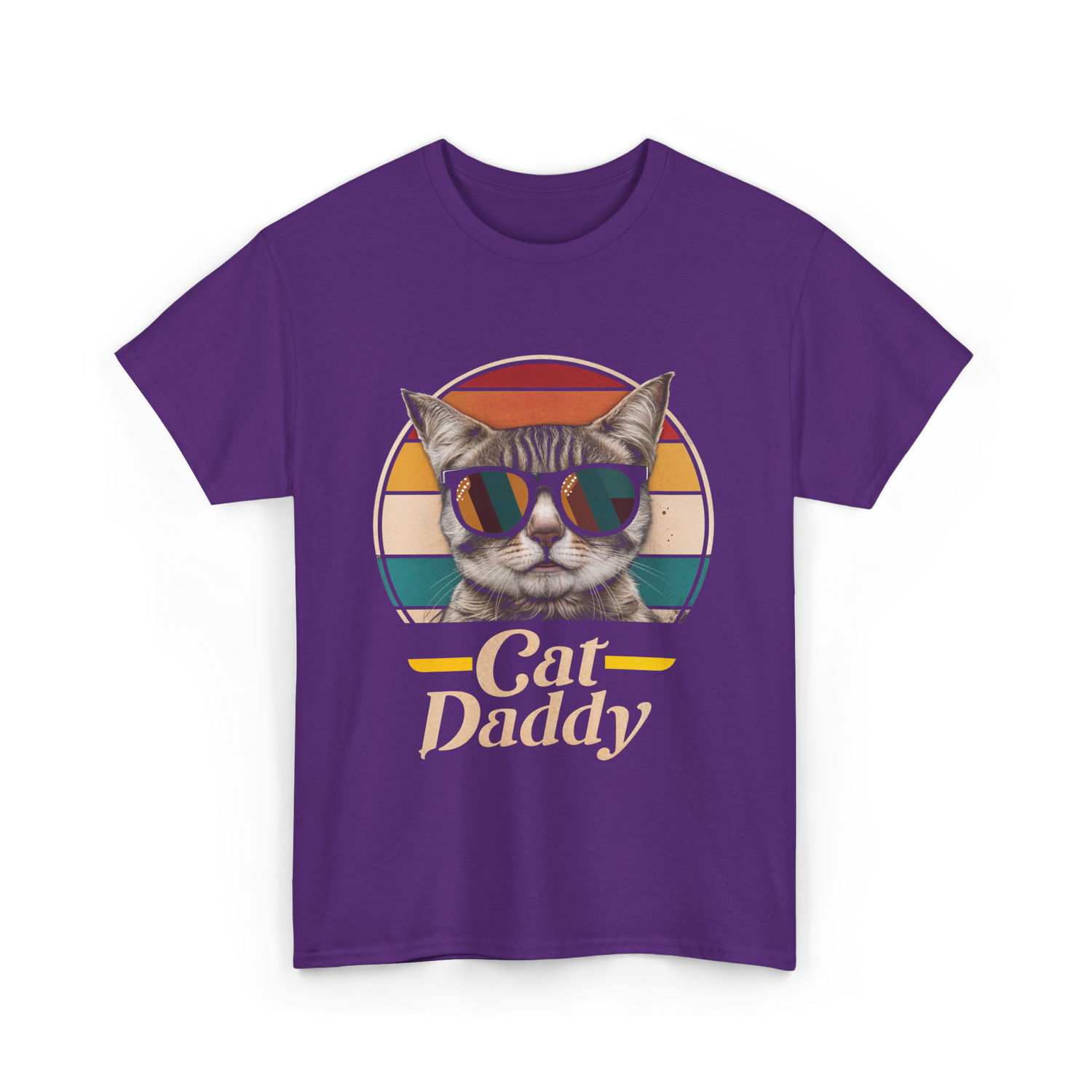 Celebrate the joy of being a cat dad with this stylish design featuring a cool cat in sunglasses. The playful retro colors and bold text make it perfect for cat owners who embrace their feline companions with pride. Ideal for men who are passionate about their pets and want to showcase their love for cats. Whether it's for a casual outing or a home gathering, this design resonates with cat enthusiasts everywhere.