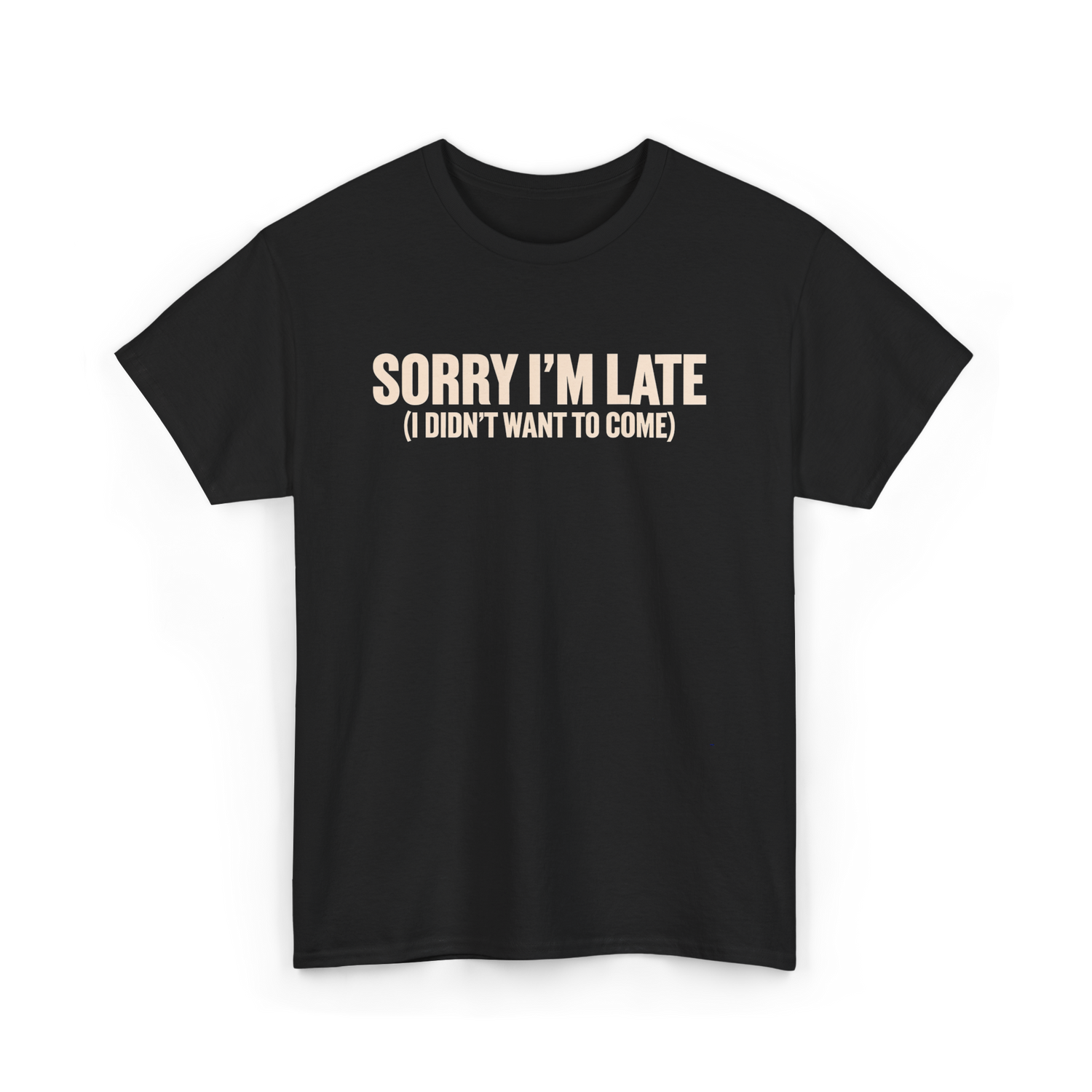 The phrase 'Sorry I'm Late (I didn't want to come)' captures a sense of humorous disappointment and an honest attitude towards social events. Ideal for those who enjoy expressing their feelings candidly, this design appeals to a wide audience, including individuals who value authenticity in social interactions. Perfect for anyone who can relate to the reluctance of attending events, this design resonates with both men and women who appreciate a straightforward approach to social obligations.