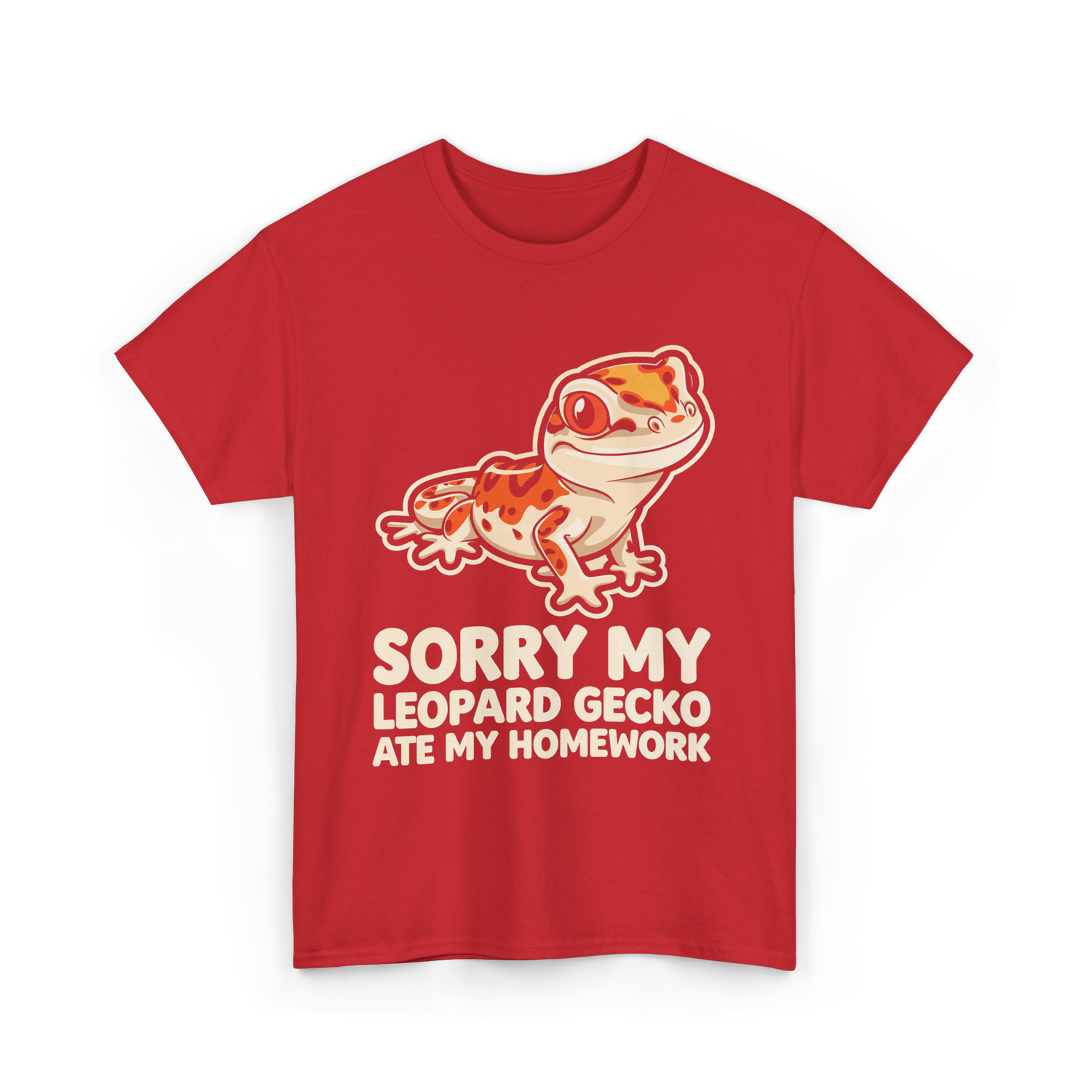 This playful design features a charming leopard gecko and the phrase 'Sorry My Leopard Gecko Ate My Homework'. Perfect for kids who love reptiles or have a pet gecko. It adds a fun twist to the school experience, making it ideal for school events or casual wear. Embrace your love for geckos while bringing a smile to classmates with this eye-catching design.