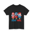 Celebrate the spirit of independence with this vibrant 'Stay Cool' design featuring fun popsicles decked in patriotic colors. Perfect for summer festivities, barbecues, and Fourth of July celebrations, this design appeals to both boys and men who enjoy showcasing their love for the USA. The popsicles, adorned with stars and stripes, embody the essence of cool summer treats and festive fun. Stand out at Independence Day parties and embrace your patriotic side with this lively design.