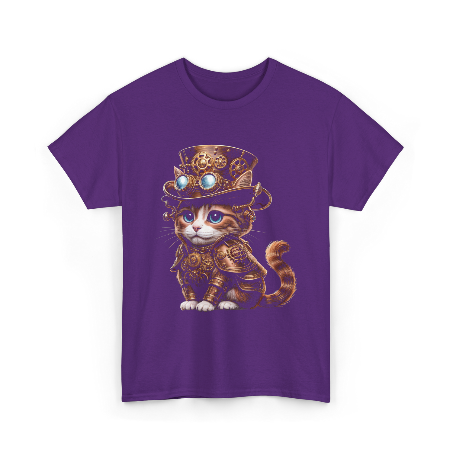 Explore the whimsical world of steampunk with this captivating design featuring an adorable cat dressed in ornate steampunk attire. The intricate details of the gears and goggles, combined with the kitten's enchanting blue eyes, create a unique blend of fantasy and charm. Perfect for enthusiasts of steampunk aesthetics, cat lovers, and anyone who appreciates imaginative artwork. Ideal for anyone looking to express a quirky style and celebrate both fantasy and felines.