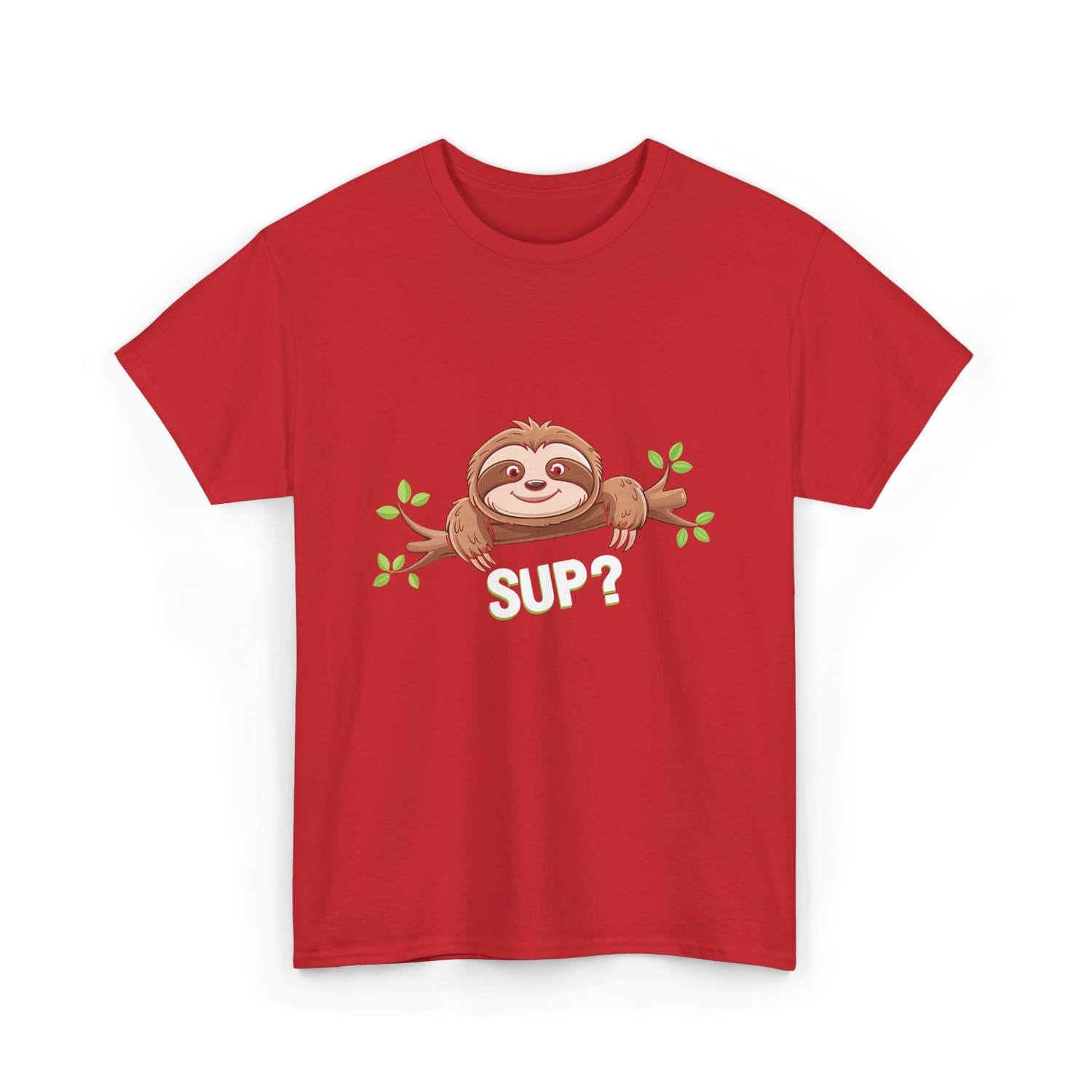 Celebrate your love for sloths with this charming design featuring a friendly sloth hanging on a branch and asking 'Sup?'. Perfect for sloth enthusiasts, animal lovers, and anyone who enjoys a laid-back lifestyle. This design captures the fun and playful spirit of sloths, making it a great choice for casual outings or just lounging at home. Ideal for boys, girls, men, and women who appreciate these adorable creatures.