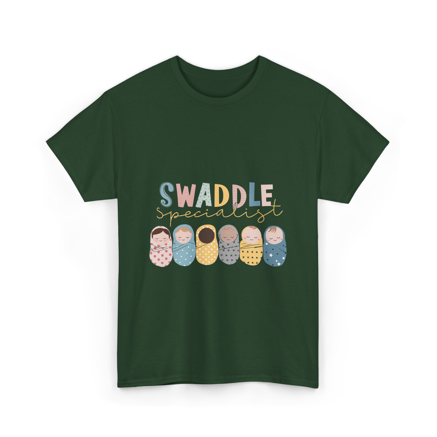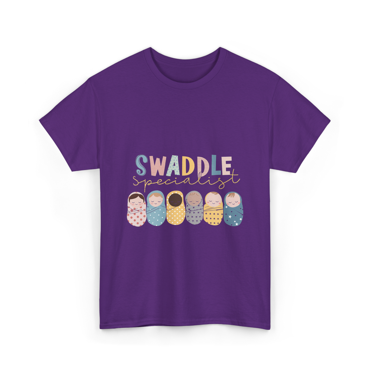 Celebrate the expertise of those who care for newborns with this charming design featuring the words 'Swaddle Specialist'. Perfect for NICU nurses, neonatal caregivers, and parents who appreciate the art of swaddling. The design showcases adorable babies in colorful swaddles, making it an excellent choice for those in the baby care profession or anyone who loves infants. Capture the essence of baby care with this delightful design that resonates with caregivers and parents alike.