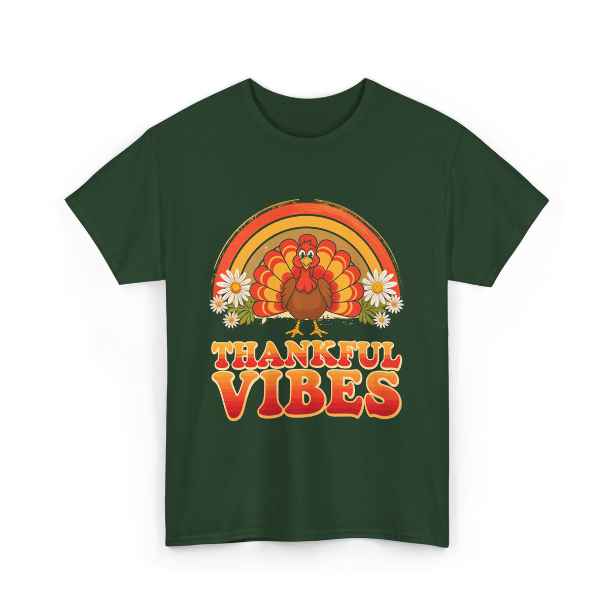 Embrace the festive spirit with this vibrant design featuring a cheerful turkey, bright colors, and a rainbow backdrop. The words 'Thankful Vibes' express a heartfelt sentiment perfect for Thanksgiving celebrations. Ideal for women who love to celebrate the season with style and joy. This design not only captures the essence of gratitude but also adds a playful touch to any Thanksgiving gathering.