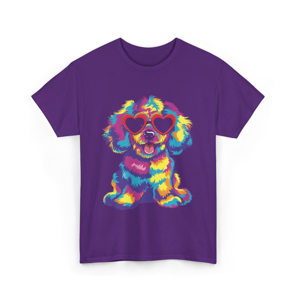 Brighten up your day with this adorable design featuring a cute dog wearing heart-shaped sunglasses. The vibrant colors and fluffy fur of the dog make it a delightful choice for dog lovers, pet owners, and anyone who enjoys playful, colorful art. This design is perfect for those who appreciate unique, eye-catching illustrations of their favorite furry friends.