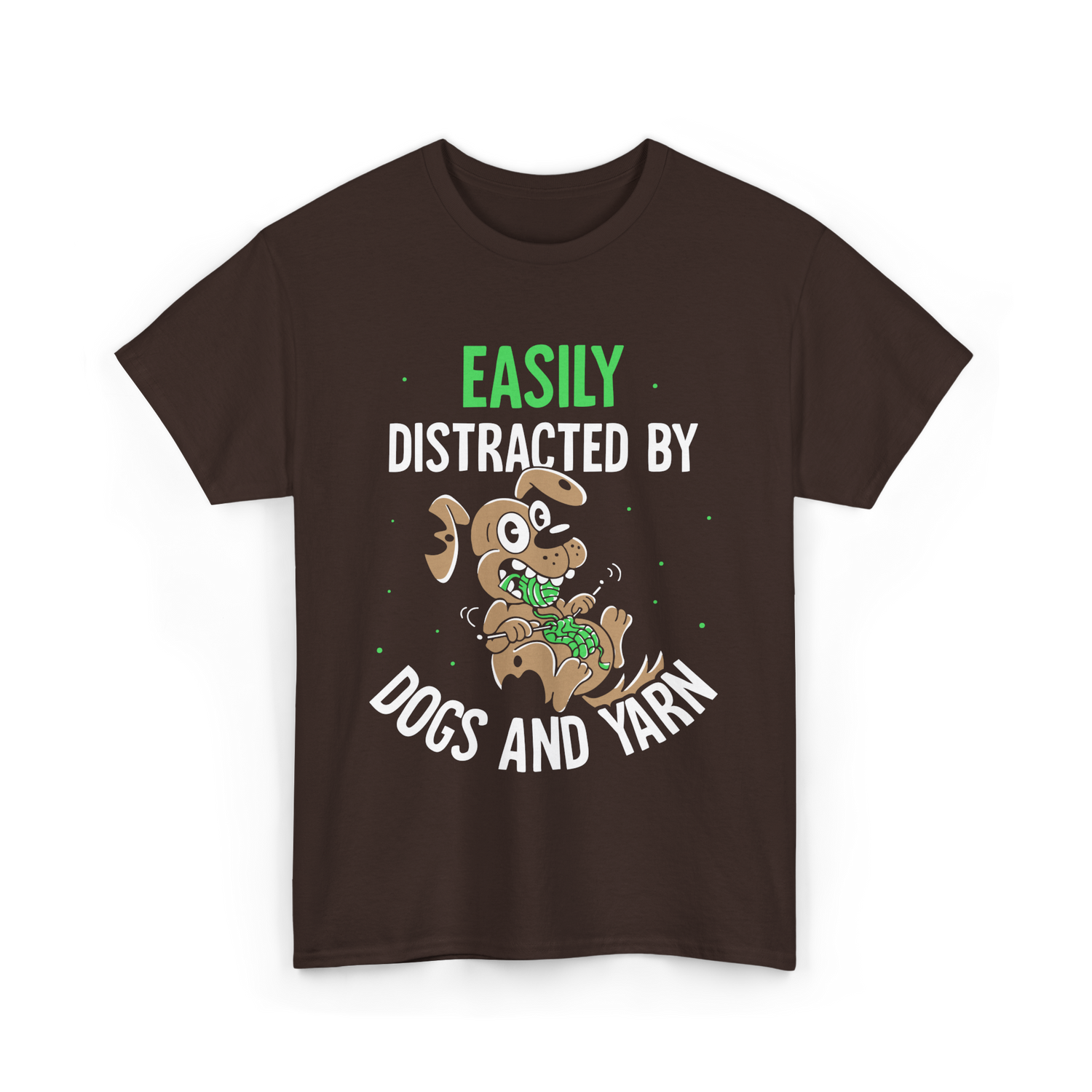 This vibrant design features a playful dog enjoying yarn, ideal for those who share a love for dogs and knitting. Perfect for knitters and dog enthusiasts alike who find joy in the quirks of their furry friends. The humorous text 'Easily Distracted By Dogs And Yarn' captures the delightful chaos of combining these two passions. Great for anyone who loves to relax with their pets while indulging in their favorite craft.