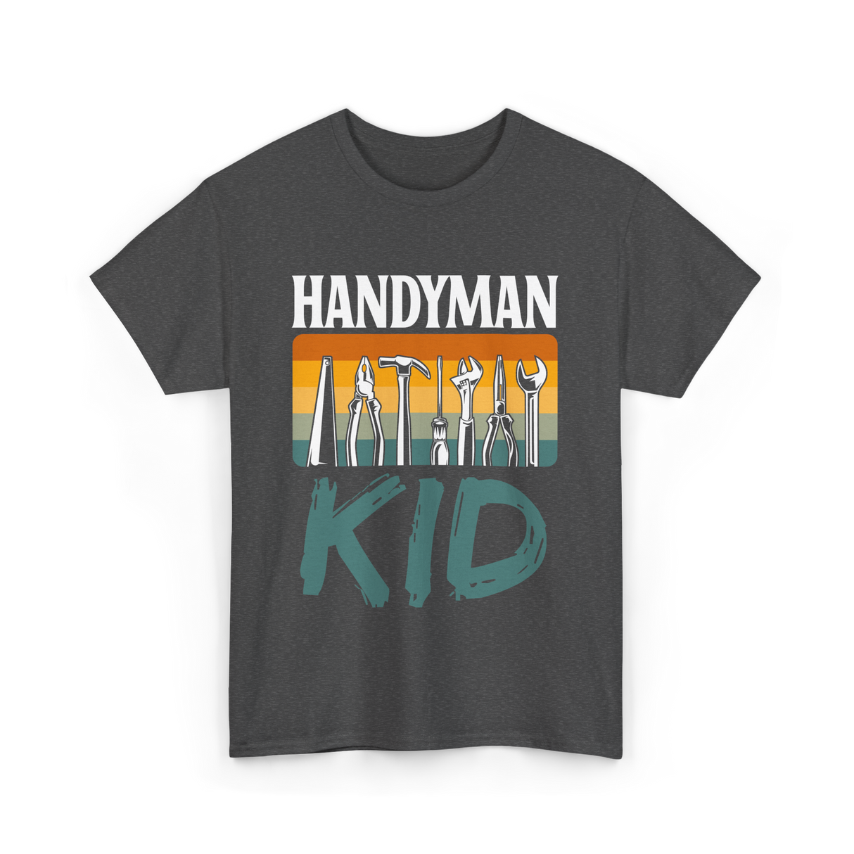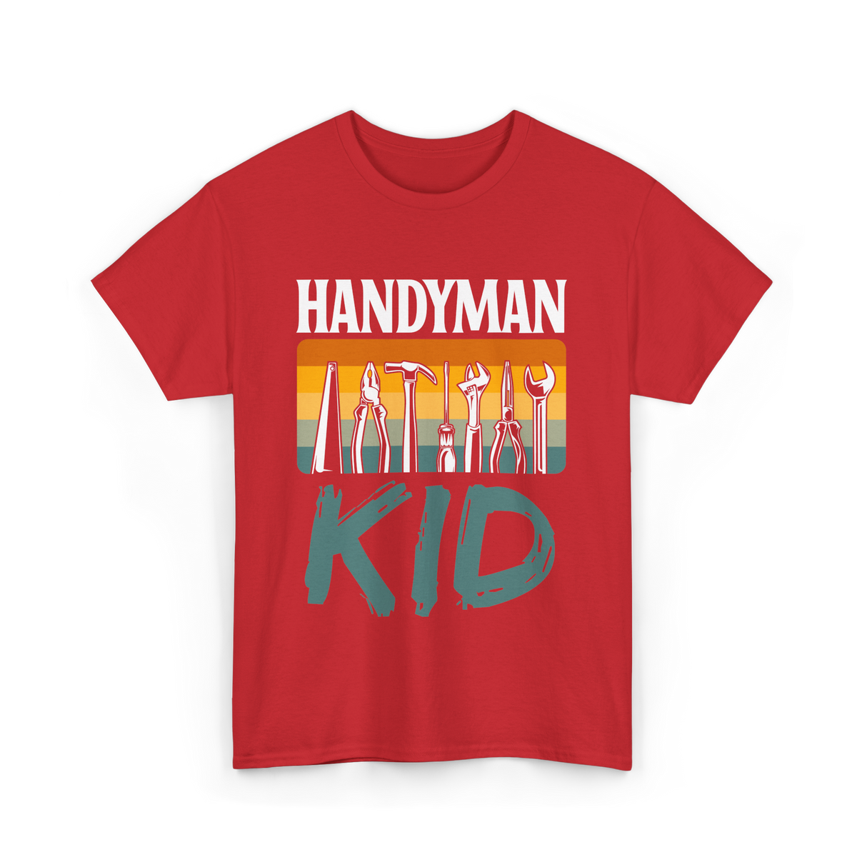 Celebrate the budding handyman with this vibrant design emphasizing creativity and DIY skills. Perfect for young tinkerers and future builders, the design features essential tools and the playful text 'Kid.' Ideal for kids who love to fix, build, and explore, this design encourages a love for handy work. Whether for birthdays or just because, it resonates with the adventurous spirit of young handymen.