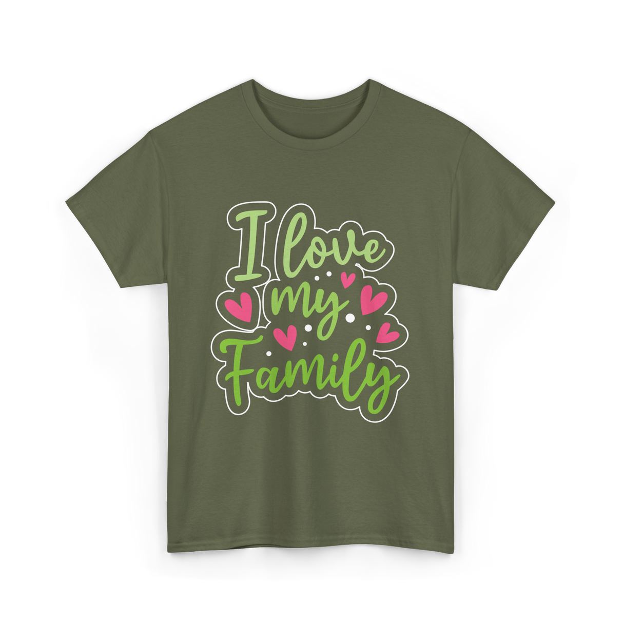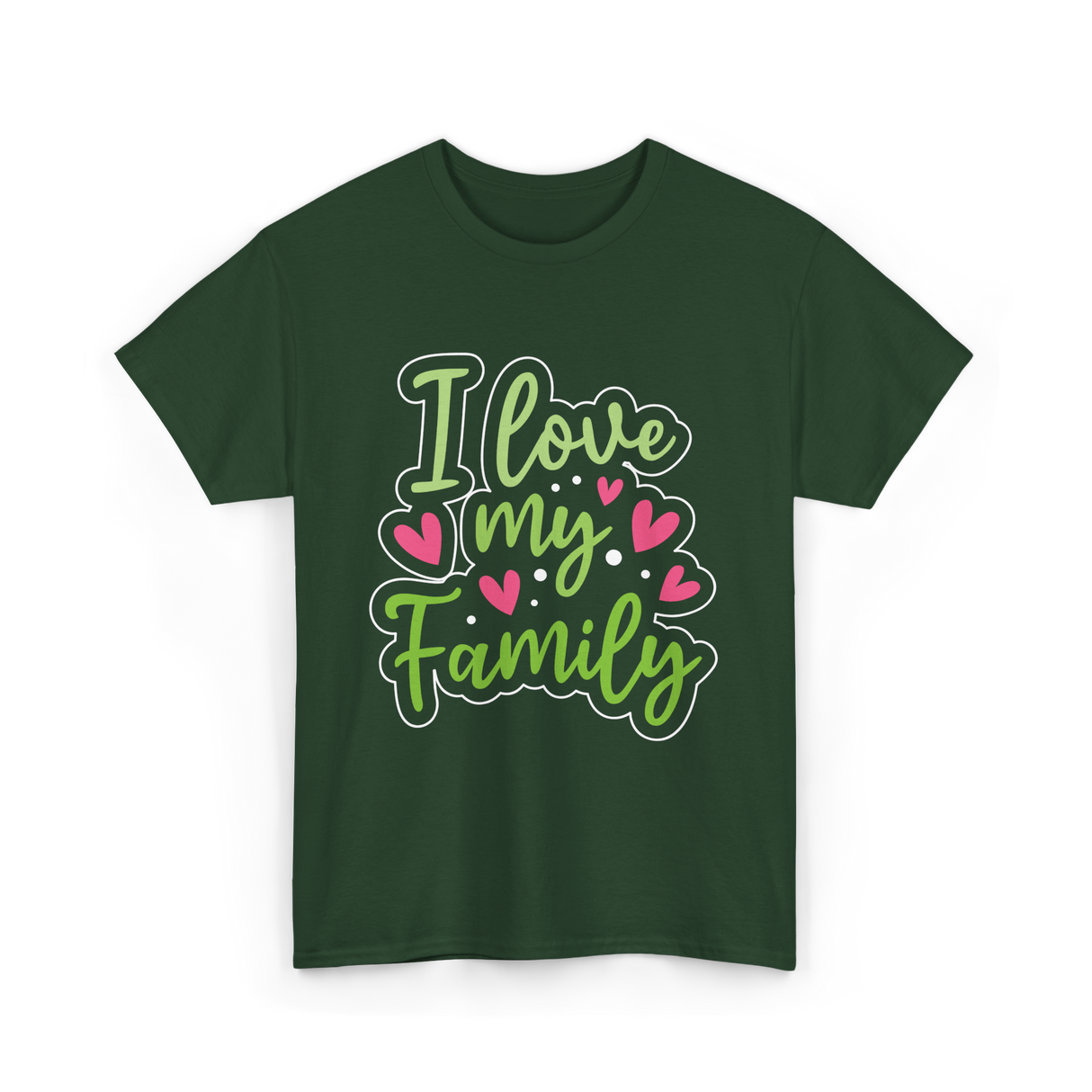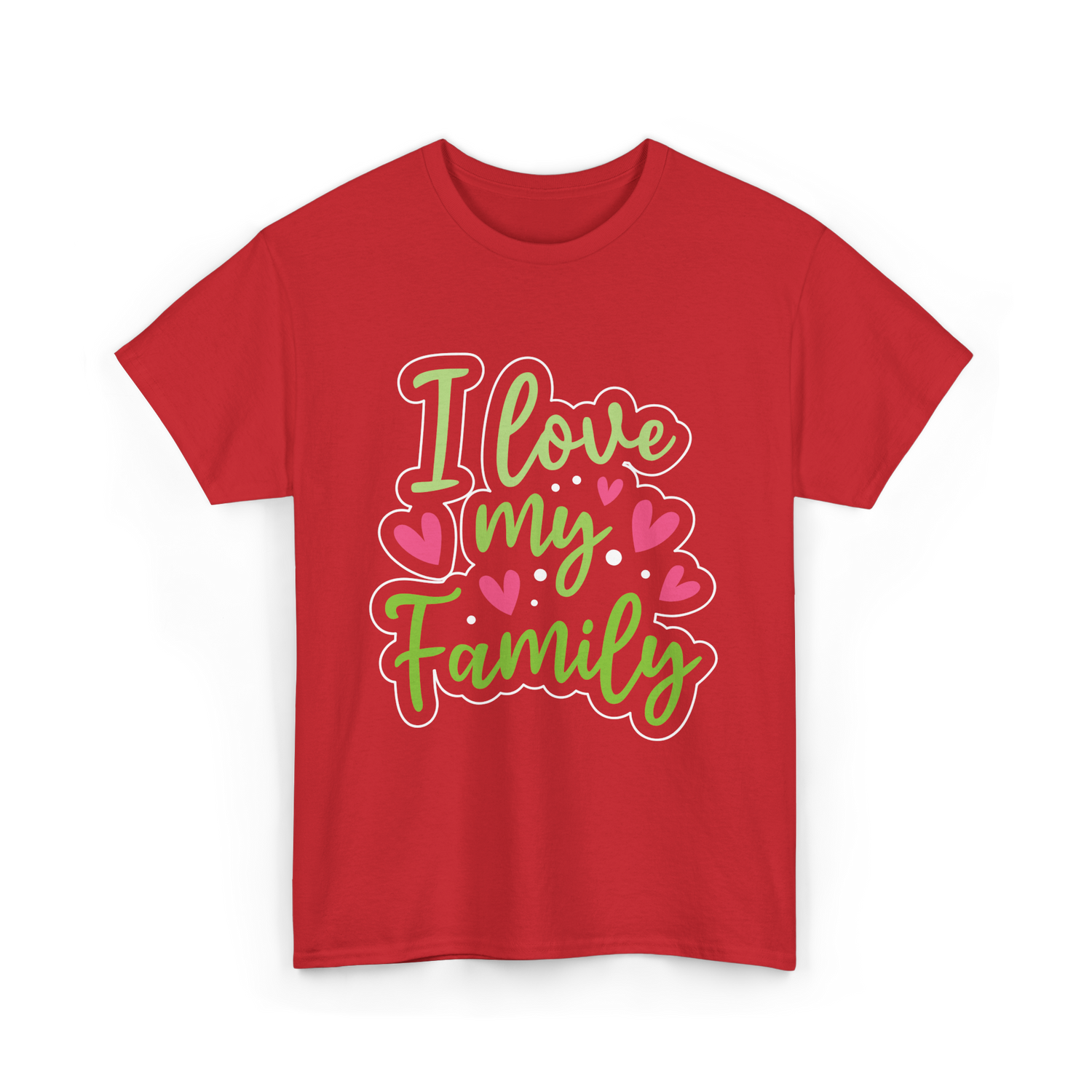 Celebrate the bond of family with this vibrant design featuring the phrase 'I love my Family'. Perfect for family gatherings, reunions, or simply expressing love for relatives, this design resonates with those who cherish spending time with their loved ones. The pink hearts add a touch of warmth, making it ideal for family-oriented men and women. Whether you're at a reunion or a casual get-together, this design speaks to the heart of family values.