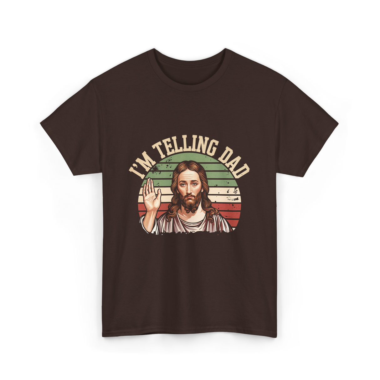 This striking design features Jesus with the phrase 'I'm Telling Dad,' appealing to followers of Christianity and those who appreciate faith-based messages. Ideal for individuals who want to express their religious beliefs or add a unique touch to their wardrobe. Perfect for church events, gatherings, or casual wear, this design resonates with both men and women looking to showcase their values.